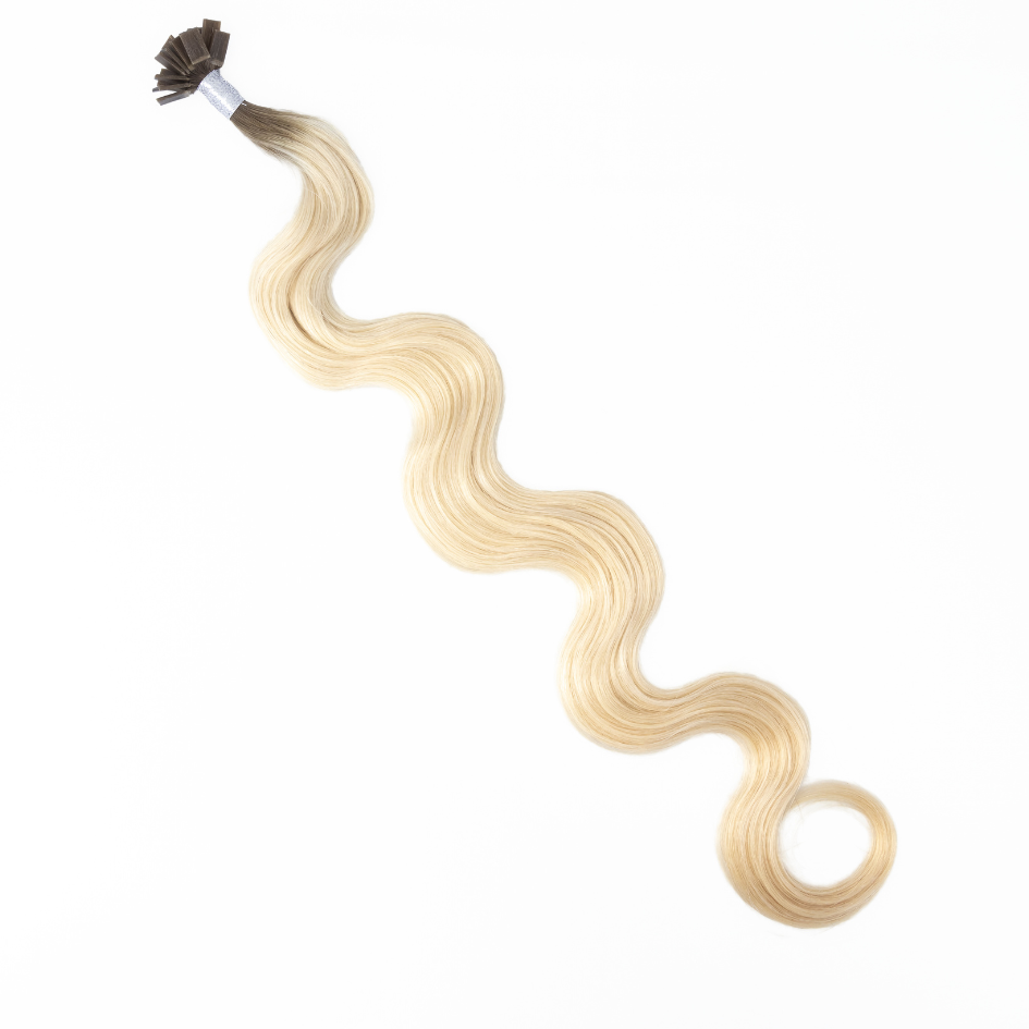 Bombshell Extension Co.’s Keratin Fusion Flat Tip Extensions are installed strand-by-strand using a Bombshell heat wand, safely melting the keratin tips onto your natural hair. Our keratin bond contains some of the naturally occurring protein found in your hair, for a seamless, natural blend.